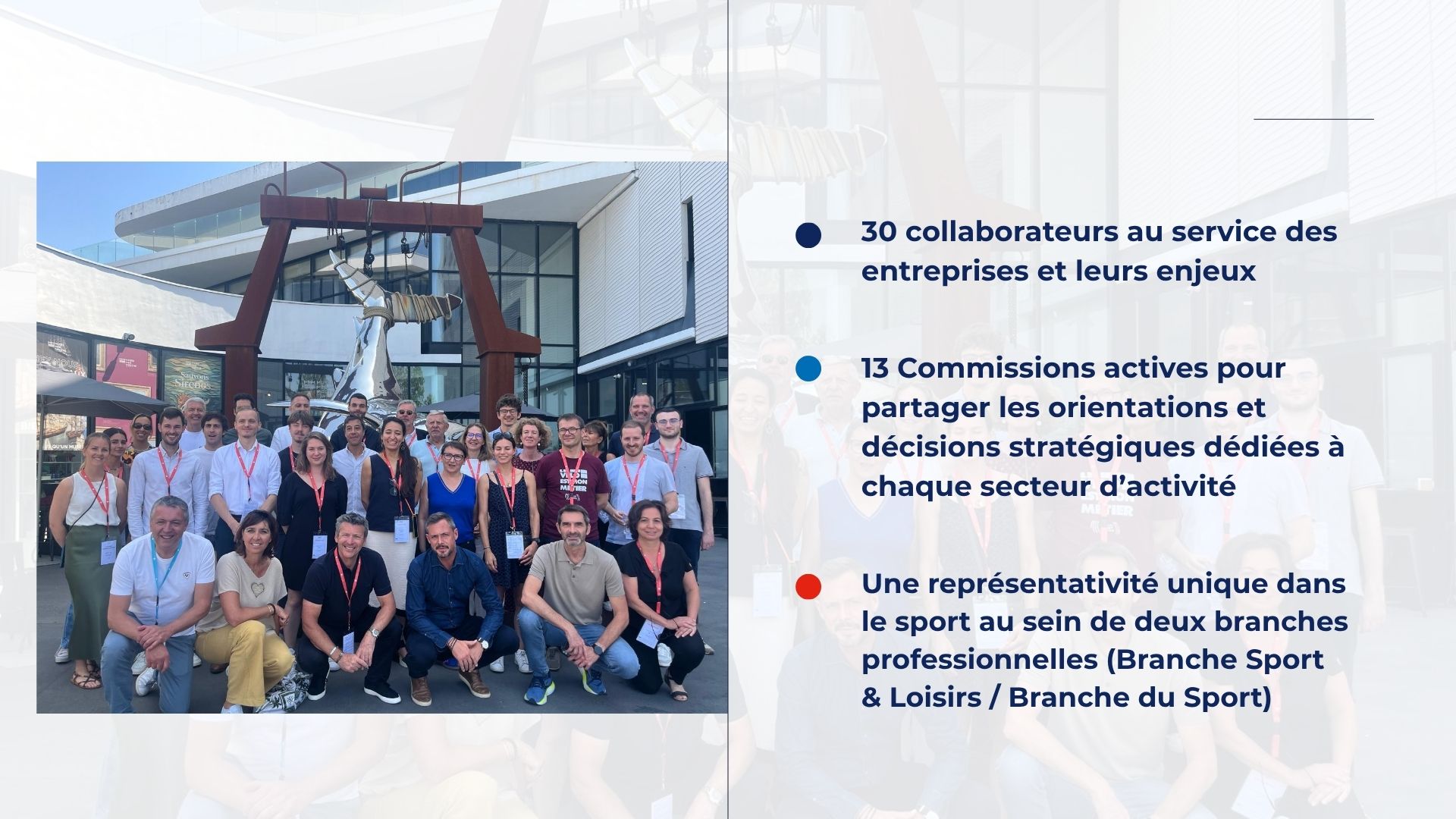 - Le mouvement sportif : Agence Nationale du Sport (membre fondateur), CNOSF,…